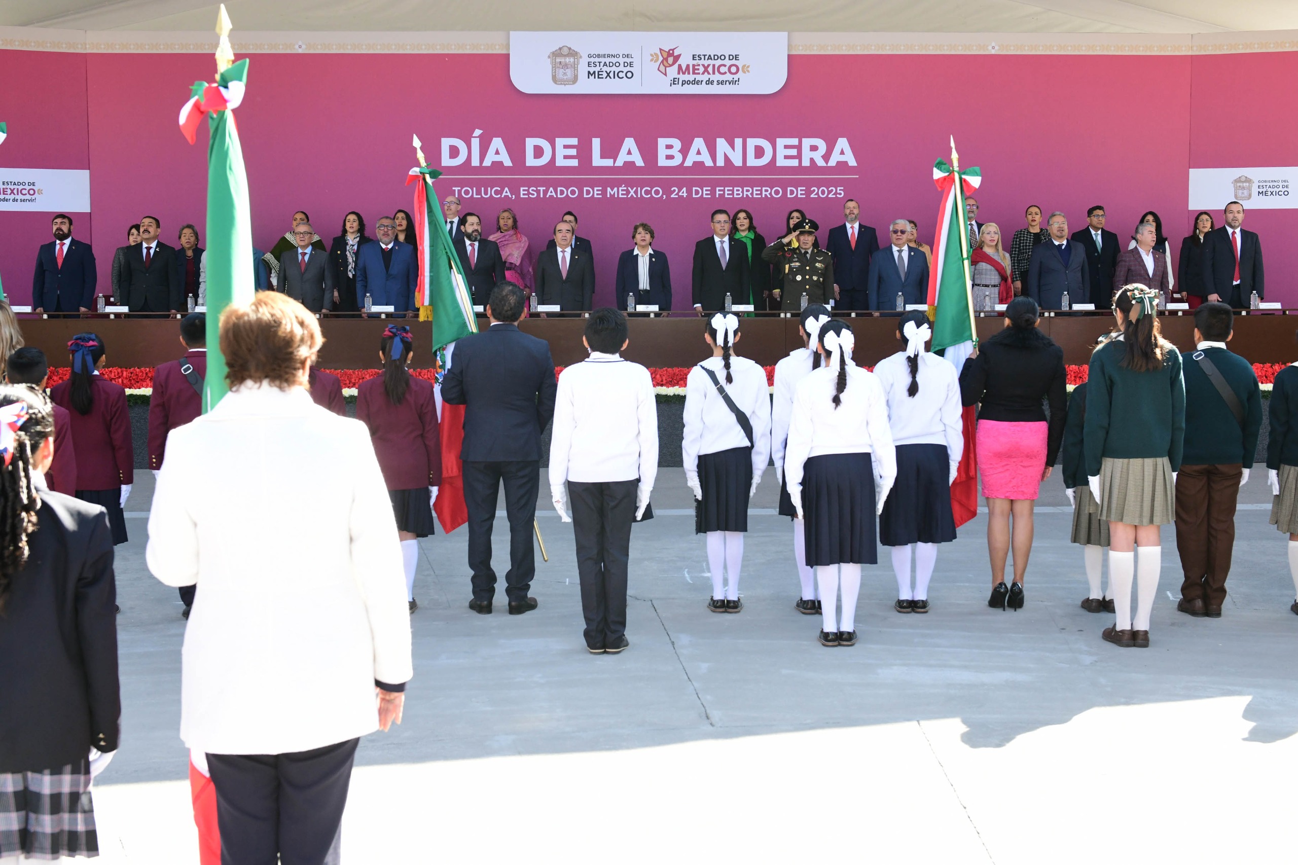 Encabeza Gobernadora Delfina Gómez Álvarez Ceremonia del Día de la Bandera; símbolo de la independencia y soberanía nacional
